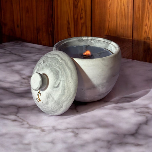 In this section, you will find all of our standard container candles ( Black, White and marble Grey). Hand Poured sanded and triple sealed to perfection.