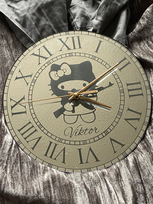 Hello Kitty Laser Engraved Mirror Wall Clock
