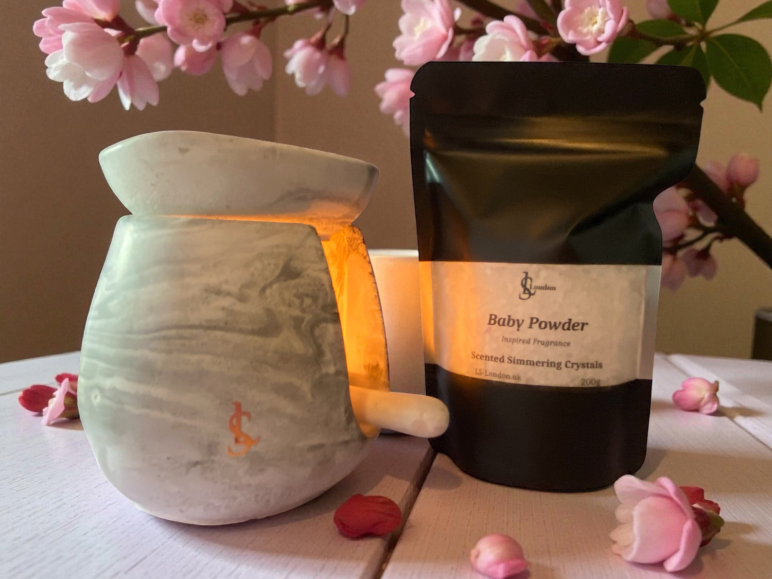 Discover the effortless charm of LS-London's Baby Powder scented simmering crystals (sizzlers), the perfect solution for easy, clean, long-lasting and spill-proof fragrances that create a warm and inviting atmosphere in any room of your home.
