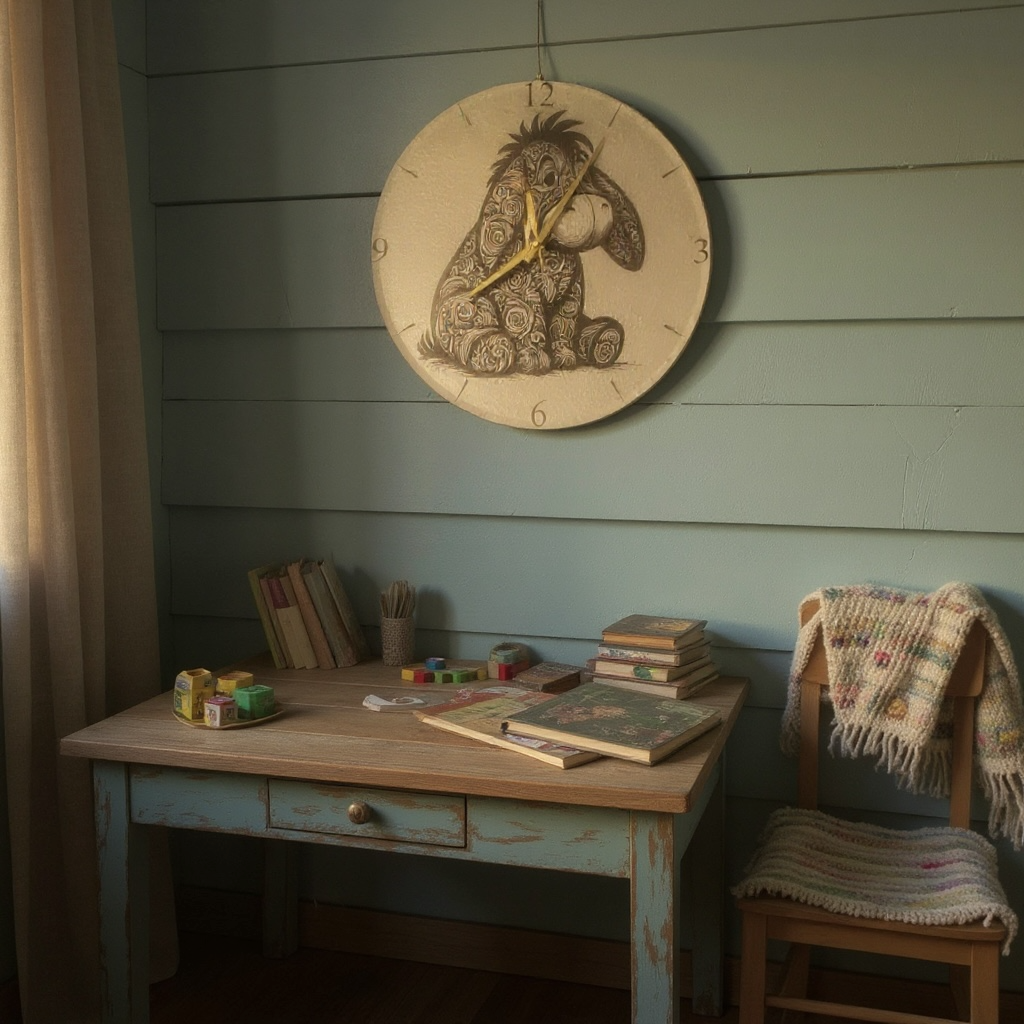 Eeyore inspired Laser Engraved Mirror Wall Clock