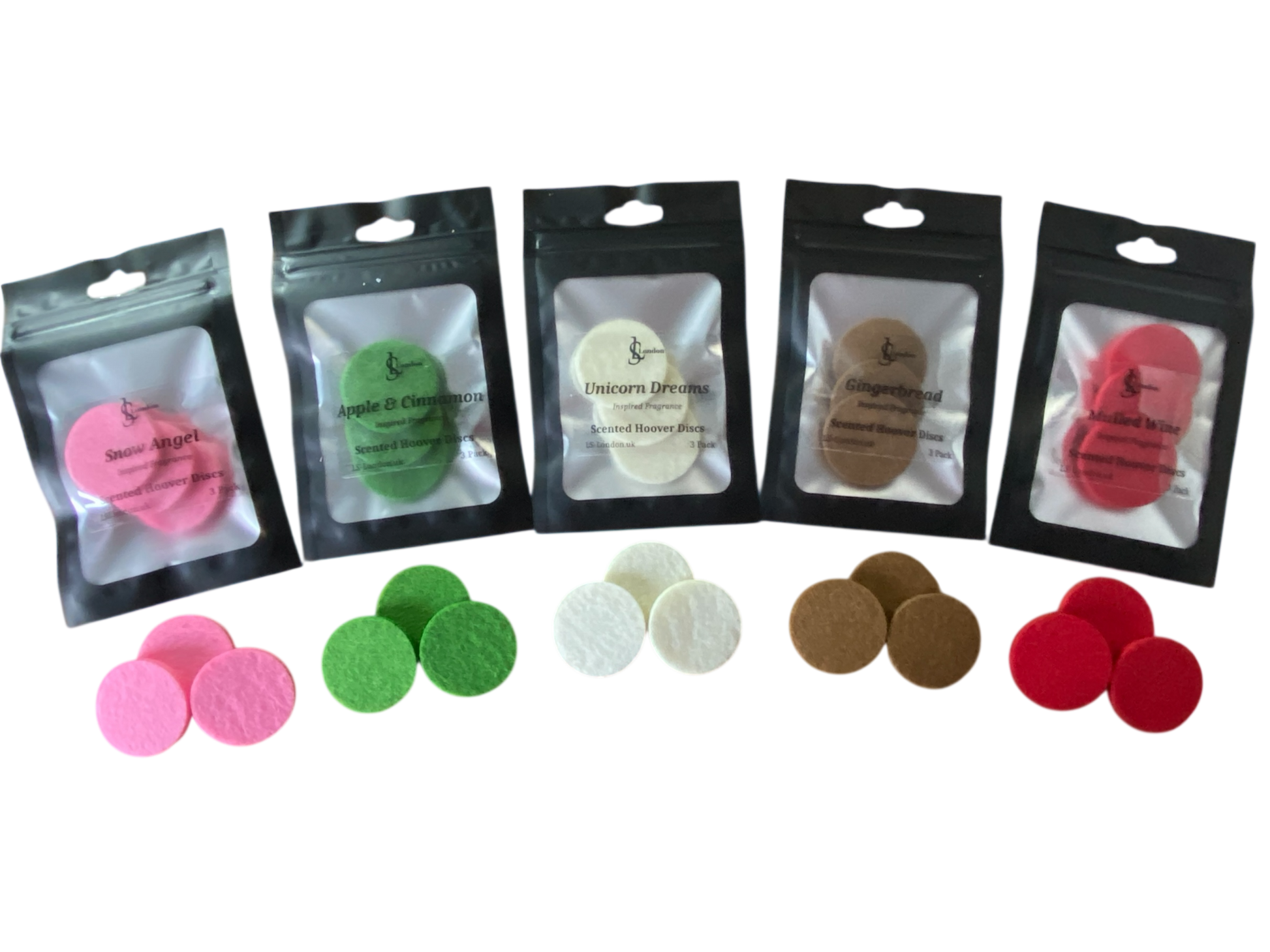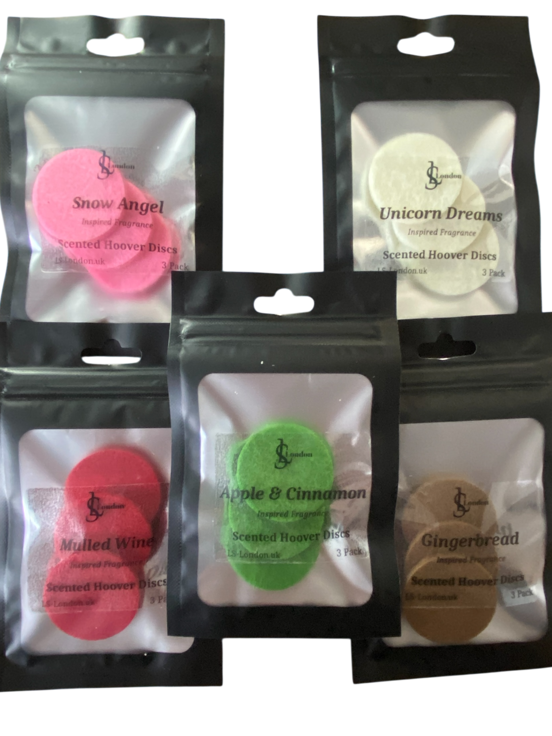 x 5 Packs of our best selling Christmas Scented Hoover Discs for £10. Saving £2.50! Gingerbread, Mulled Wine, Snow Fairy Inspired, Unicorn Dreams and Apple & Cinnamon.